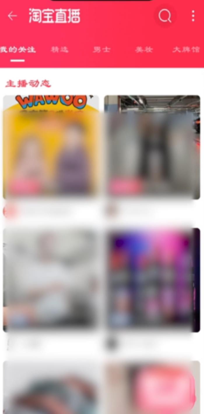 打开手机淘宝APP,进入淘宝主页后,向下翻,找到“淘宝直播”,点击进入。
