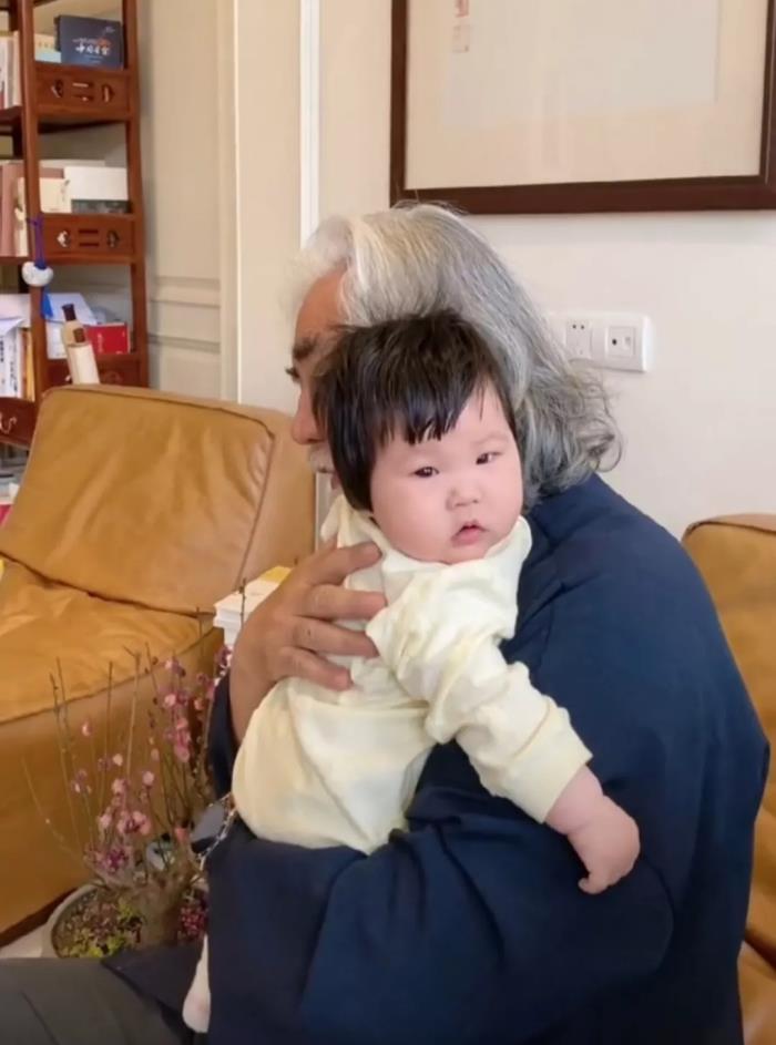 视频中一头白发的张纪中抱着自己的小女儿,小女儿的脸肉嘟嘟的,看起来十分可爱,不过在一头白发的张纪中的怀里,颇有些爷孙的感觉。