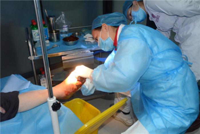 对于感染比较严重的患者,根本就很少有医生愿意去坐在这里花上长时间来对其足部的清创,它不仅仅是需要医生的承受能力,还需要医生的耐心,更需要医生的责任心。