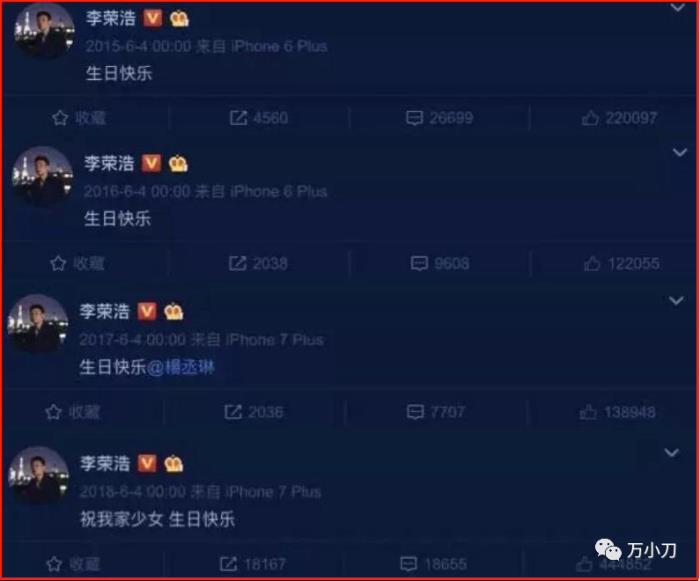 两个月后,李荣浩不再遮遮掩掩,在长沙录制节目时大方公布了恋情。从此,天天在微博上给网友“撒狗粮”。