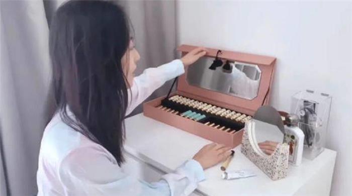 桌子上只有一款很小的化妆镜,还有必备的一些化妆品。