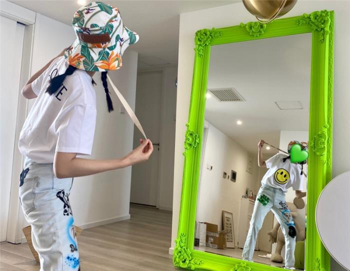 这款镜子看上去非常大,平时周雨彤的自拍都是在这块镜子前完成的,