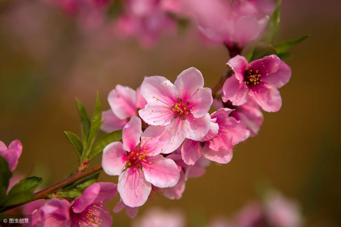 唐·王维《田园乐》:“桃花复含宿雨,柳绿更带朝烟。花落家童未扫,莺啼山客犹眠。”