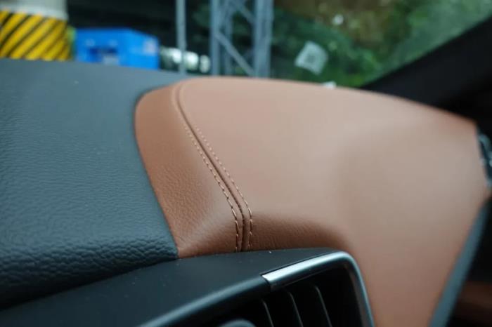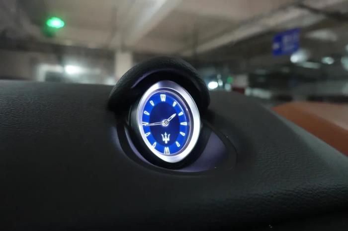 当然在造工细节上,玛莎拉蒂也努力让Ghibli够得着身价,车舱内大面积覆盖的皮质让触感很友善,头顶上的黑色绒布顶棚手感也较为细腻,中控台上方的石英钟虽没有大牌加持,但与仪表盘相同的深蓝色表盘还是让人感受到大海深邃的气息。