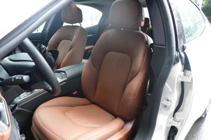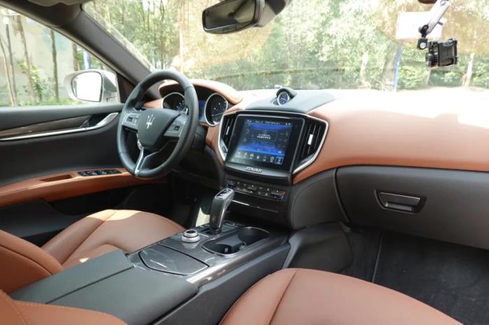 不过坐在这部Ghibli车内,我能感知它的内饰风格趋于家用化,没有当下推崇用数块大屏堆砌出的前卫感,比如中控台的液晶屏宽大的边框内是精度不高的显示效果,内置功能页面也没有当下智能化的影子,好在中期改款后,Ghibli配置会有明显提升。
