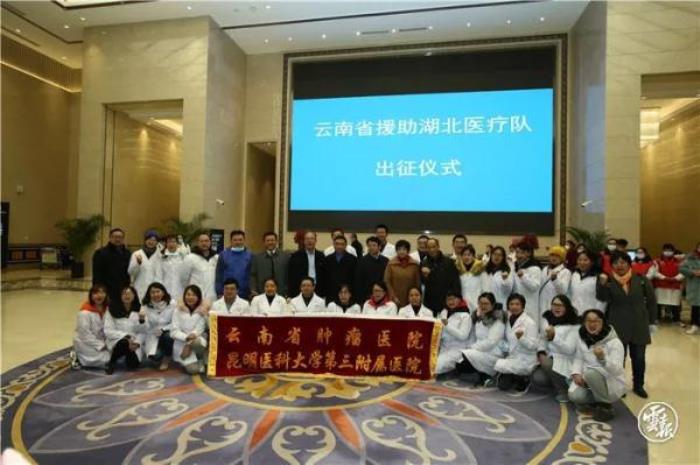 “医生的天职就是治病救人,救死扶伤,特别是作为一名党员,更是要义不容辞地参加疫情的防控工作。家里面也非常支持,都感到这是一个非常光荣的工作。接到医院的通知后全院医护人员都在积极踊跃地报名,能被被选中作为第一批队员大家都感到非常荣幸。”云南省肿瘤医院援助湖北医疗队队长段林灿说。他介绍,云南省肿瘤医院共有27名医护人员参加了首批医疗队。在接到通知后,该院各个党总支充分发挥党员的先锋模范带头作用,全院在不到一天的时间内就有737人报名,其中党员占65.4%。有的医护人员的孩子还很小,但大家都在第一时间赶到了医院报名。