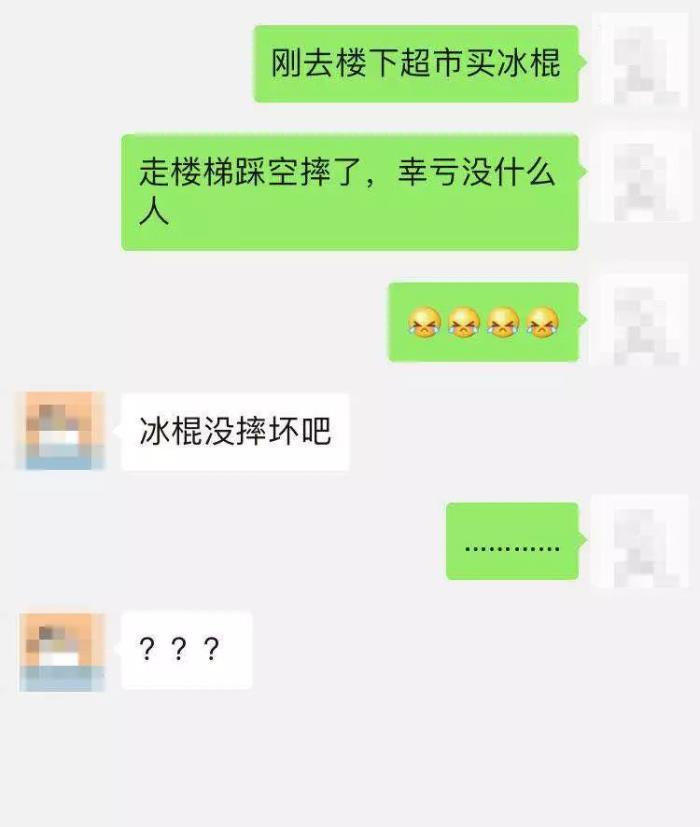 女生走楼梯摔了,第一个关心的竟然是冰棍???