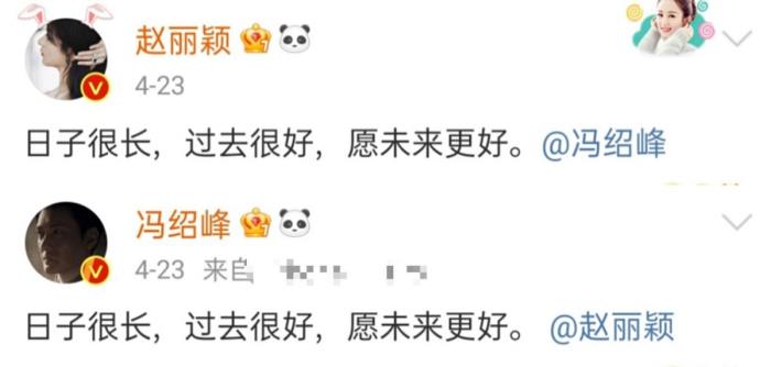 在今年4月份,本来很受大家喜爱的赵丽颖冯绍峰夫妻在社交平台发文官宣了已经离婚的消息,两人用同样的文案“日子很长,过去很好,愿未来更好”结束了这段婚姻,并且据了解离婚后他们还是共同抚养儿子。
