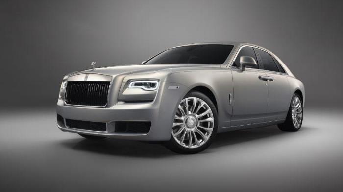 外观方面,新车采用定制Cassiopeia银色涂装,腰线采用100%纯银颗粒点缀,奢华感十足。车头配备由纯银打造的“欢乐女神”雕像,底座刻有经典“银魅”的注册牌号“AX201”,并镀有黑色镀金镶边,另嵌铜质饰条。