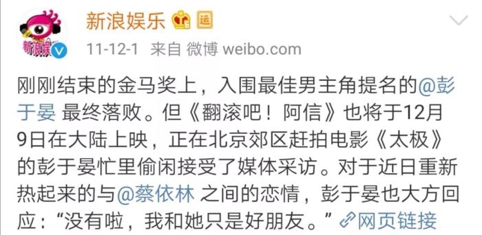 绯闻女友不止,但彭于晏至今仍单身一人。他说,“虽然之前也有谈得来的,但是后来因为工作就没办法”。
