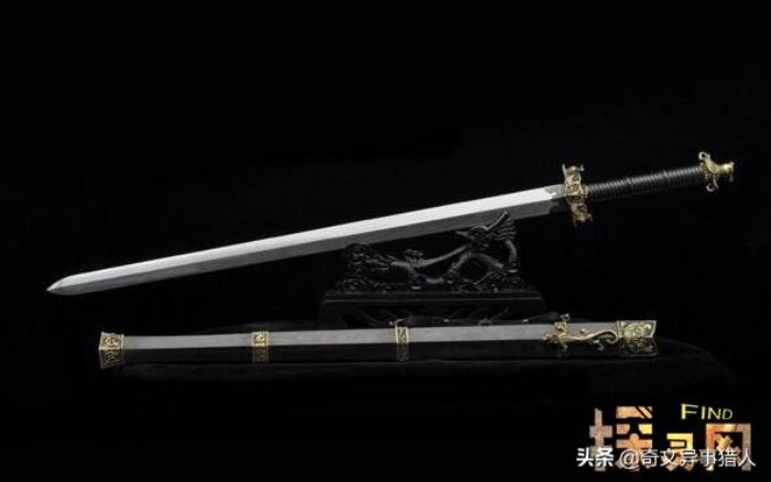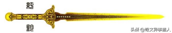 此剑乃黄金色的千年古剑,传说是天界诸神赐于轩辕黄帝击败蚩尤的旷世神剑;由众神采首山之铜为黄帝所铸,后传与夏禹。剑身一面刻日月星辰,一面刻山川草木。剑柄一面书农耕畜养之术,一面书四海一统之策,是上古十大神剑之首。