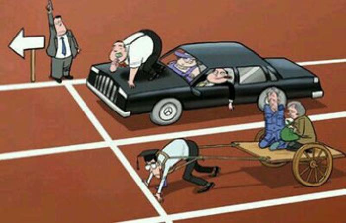 老师说,每个人的起跑线都是一样的,看了这幅图之后,我终于明白了!穷苦人,靠自己。但有钱人,永远靠的是别人