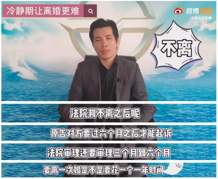 来来回回,至少也要半年。就算没有冷静期,离婚也不是一件速战速决的事情。