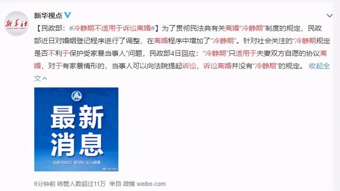 离婚这么难,谁还敢结婚!今年想离婚的赶紧离,明年离不了了!万一冷静期被打死呢?这30天太多余了!