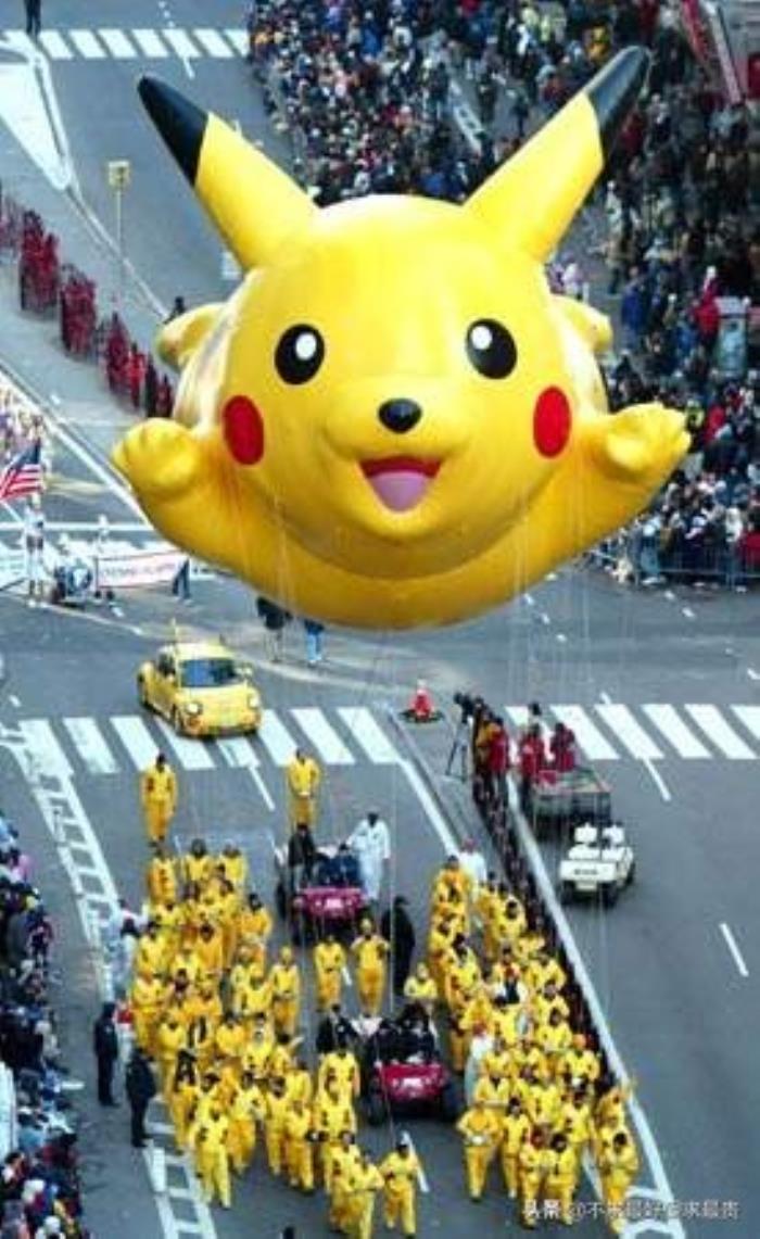 梅西感恩节大游行上放飞的巨大的皮卡丘气球