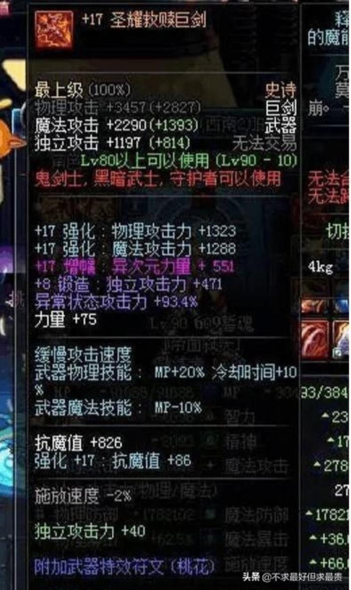 还有某主播亡誓的武器,增幅达到17的圣耀救赎巨剑,估价50万人民币。