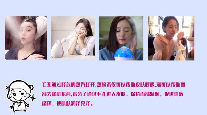 很多小伙伴都喜欢用蒸脸仪或者热水、热毛巾来蒸脸。其实蒸脸的好处还是挺多的,不仅有利于打开皮肤毛孔,利用水蒸气促进面部皮肤的血液循环,让皮肤变得红润白皙(这也就是为什么你洗完澡之后,觉得自己皮肤超好的原因),还可以通过蒸脸,帮助皮肤拍出皮肤表层的脏东西,清洁毛孔。
