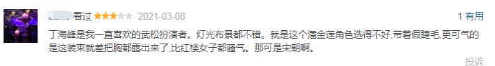 除了丁海峰和潘长江的表演尚存亮点之外,包括女主演潘金莲的乏善可陈,以及总体剧本、特效的一般乃至不用心,都让观众对这部所谓的情怀之作不买账。