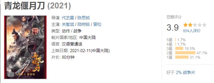 但顶着最开始的期待值上线后,观众发现他仅仅出场10分钟,影片也存在种种问题,关二爷又如何?分数3.9分。
