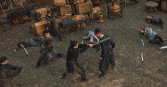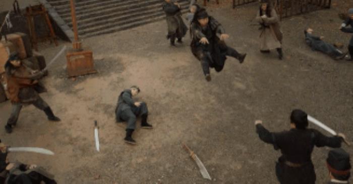 再比如,这位群演被刀划了一下,直接就反物理原理侧旋飞了...