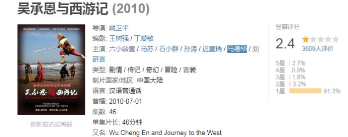而孙悟空形象深入人心的六小龄童推出的西游情怀系列影片,评分也极为惨淡。