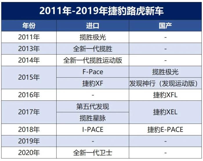 2011年之前,捷豹路虎只生产大型车。2011年起,捷豹路虎拥有了极光、XE、F-PACE、以及换代改名的发现神行(后改名发现运动)等车型,进入到销量规模最大的中型轿车和中型SUV市场。除了这些走量的车型,捷豹还推出了F-TYPE,一款用来建立品牌信仰的跑车。和以往相比,路虎的一个短板是越野有余,内饰豪华氛围不足,但过去几年里这些产品的短板也不复存在。