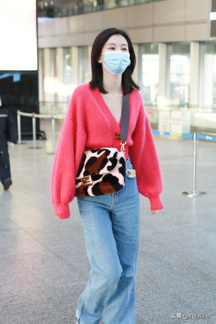 近几年,随着乔欣热度的升高,大众也开始把目光放到了这个身材娇小的漂亮女人身上。这一次她身穿玫红色v领针织衫搭配浅色牛仔裤在机场亮相,青春又靓丽,束腰设计勾勒出她纤细的腰身,尽显时尚女性的自信,想要搭配出同样时髦风格穿搭的美眉们一定不能错过这一期的穿搭技巧噢,原来乔欣的身材这么好,玫红色针织衫配牛仔裤利落舒适,高挑纤瘦。
