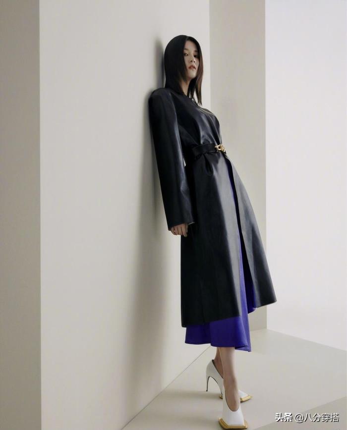 ②黑色皮质大衣+腰带