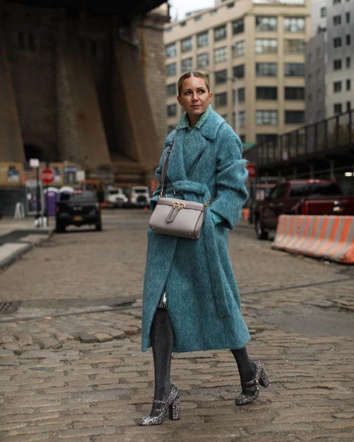 秋冬的清浅蓝色系大衣,想要穿出摩登时髦,加入一点红色和粉色,再用白色点缀强化干净利落感,看看,浅蓝色也有着奢华的一面。