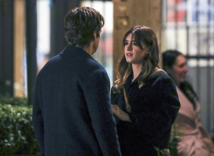 塞巴斯和女神黛西在街头开心对话之后,黛西转头深情凝视着塞巴斯,红唇微启双目含情,似乎有很多话想对他说。