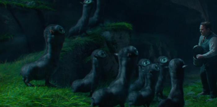 3 屎壳郎:前部中的重要“群众演员”,体型比普通的屎壳郎大很多很多,雅各布和纽特在箱子里的“空间”时,它们不断推着大粪球走来走去充当背景。