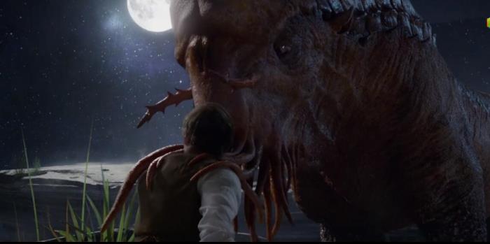 1 驺吾:出自《山海经》的东方神兽,大小类虎、尾巴长过身体、善于奔跑,只吃自己死的动物,所以被称为“仁兽”。影片中的驺吾基本符合《山海经》中的特点,但是造型太像东方“舞狮”了,畸形的前爪也是一言难尽。