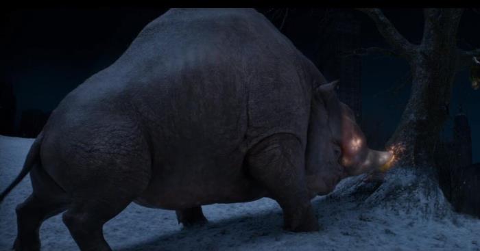 3 毒角兽:样子像犀牛,头部的独角里有毒液,看起来一闪一闪像贮藏了许多岩浆火炭。可以抗拒大部分魔咒,独角无坚不摧,它的毒液可以让人爆炸。