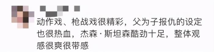 有网友评论该电影“动作戏、枪战戏很精彩,父为子报仇的设定也很热血,杰森·斯坦森酷劲十足,整体观感很爽很带感”。