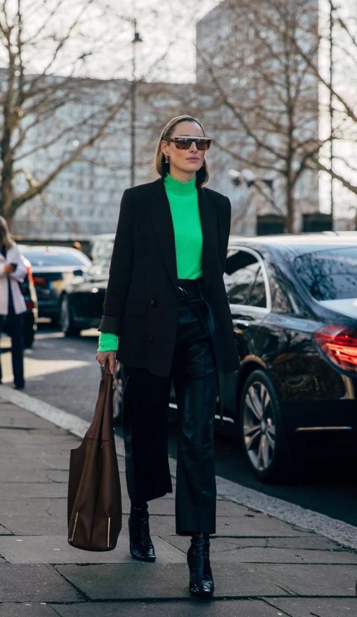 放心,再艳丽的鞋子与黑色裤子都能完美匹配在一起,我自己就有好几双黄色、红色的船鞋或短靴。