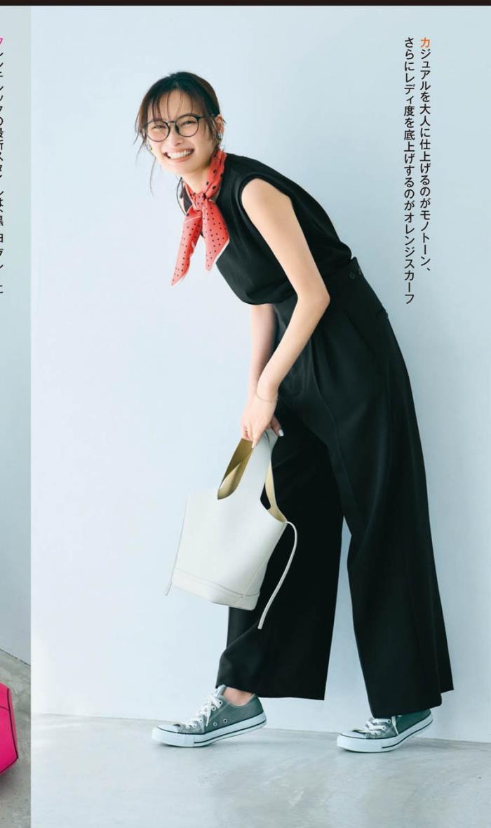任何的不普通穿搭,都是要打破常规,比如增加上一条红色小丝巾,都会看起来活力和轻松。