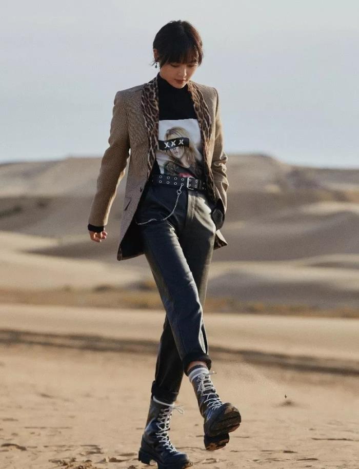 如果不想穿马丁靴时,可以直接搭配印有波普图案的上衣,图案总是冷漠又迷人,充满独特感。