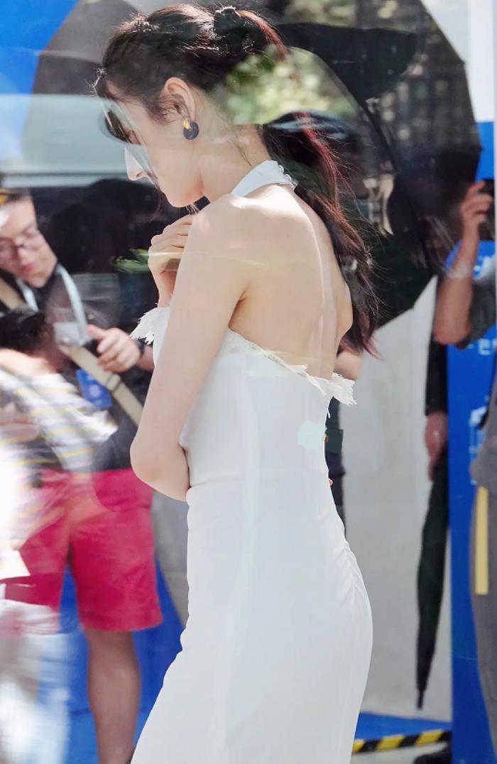 裙子的裹身剪裁很显腰身,为了符合新剧角色的人设,她明显减重不少,小腿、手臂非常纤细,背后的肩胛骨突出明显,S型身材十分让人羡慕。