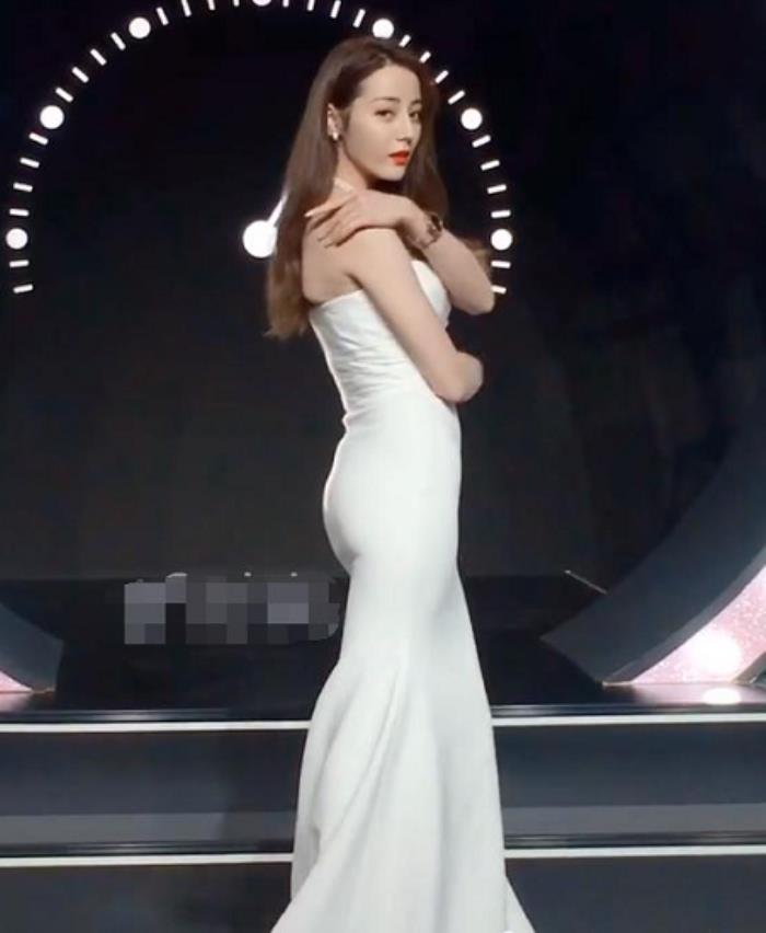 穿白色修身礼服时即便有话筒遮挡,她还是不放心继续用手遮,不够大方,不过这次活动的主题是展示腕表。