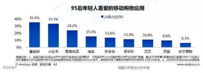 调查报告显示,在95后年轻人喜爱的移动购物应用中,小红书排名第二位。在使用小红书的人群中,24岁及以下已经占据21.4%。