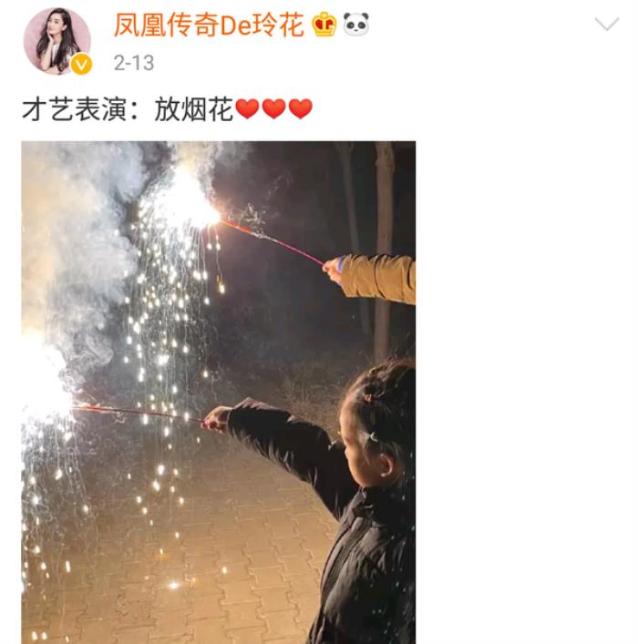 除了事业,玲花也经常会在社交平台上晒出自己的日常,2月13日,她就曾在社交平台上晒出一张与女儿一起放烟花的照片,场面十分温馨。