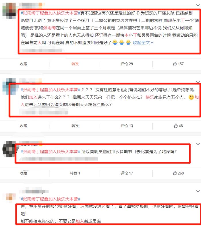 看来快本这次招新人,也并不是每个人都很满意的,不过毕竟网友都希望能够节目组公平公正,所以有这样的看法也是很能理解的吧!你觉得张雨绮和丁程鑫加盟快本的节目如何呢?欢迎留言哦~