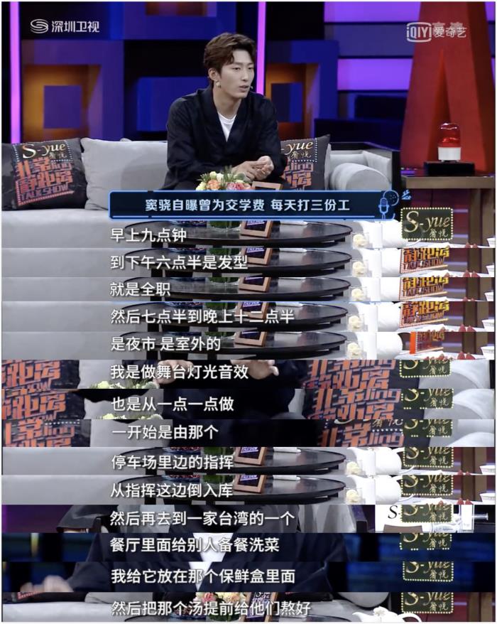 高中毕业之后,窦骁马不停蹄地进入了工作状态。早晨九点到下午六点半在理发店做全职,七点半到十二点半在也是做舞台灯光音效,十二点之后去一家台湾餐厅帮忙洗菜备菜。