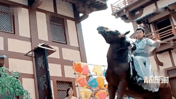 这种骑马姿势后来被他用在了《楚乔传》里,燕洵的鲜衣怒马,都在他随风扬起的长袍和马背上了。
