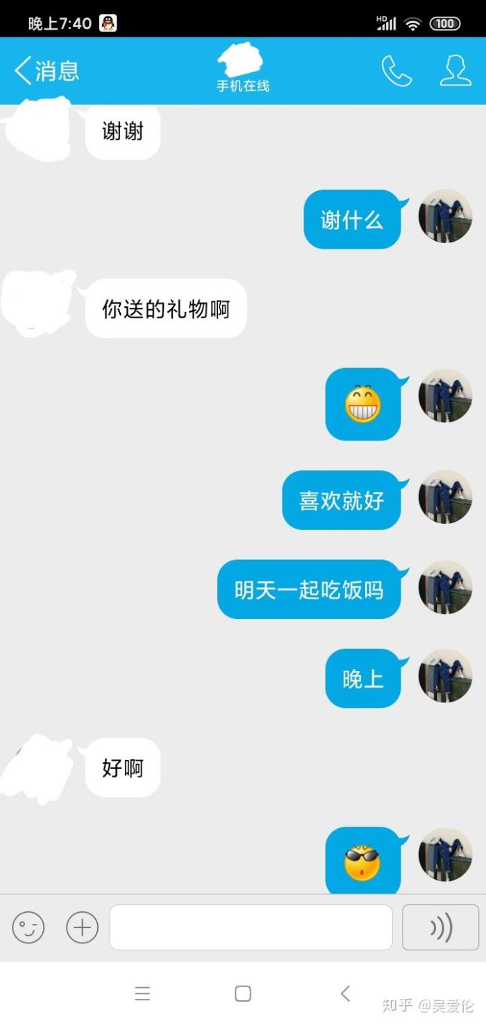 之后跟她发了信息,她回我了,还发了表情,看上去没有很抗拒联系了。激动的我当天手机看了又看。