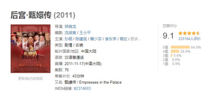 《甄嬛传》豆瓣评分:9.1分