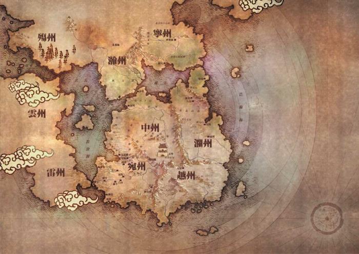 世界观:殇、瀚、宁、中、澜、宛、越、云、雷九州等。