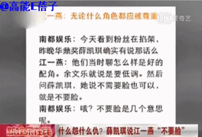 究其原因,与薛凯琪5年前在颁奖时公开说江一燕“不要脸”有关。