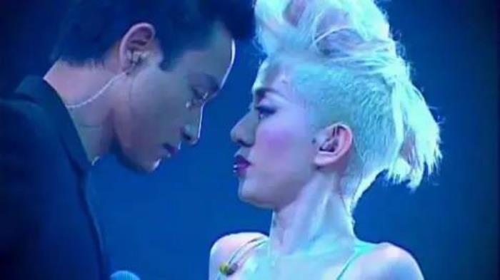 1997年,张国荣在演唱会上,手捧鲜花走到了梅艳芳眼前,给了她深深的一吻,好像久别重逢的恋人,梅艳芳惊喜万分,瞬间脸红。