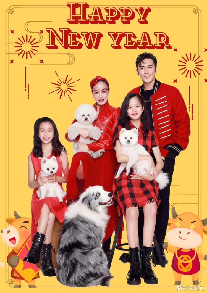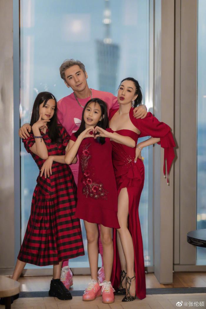 对另外两个继女,张伦硕也是相当呵护,她们之间的关系十分融洽。